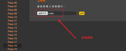 打开靶场第18关,上传前面创建好的木马文件