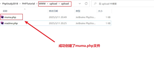 经过一段时间的攻击,可以在upload目录下看到生成的muma.php文件