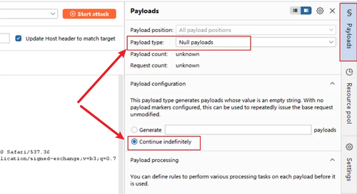 • 在下方选择Continue indefinitely。表示不断爆破,手动停止为止。